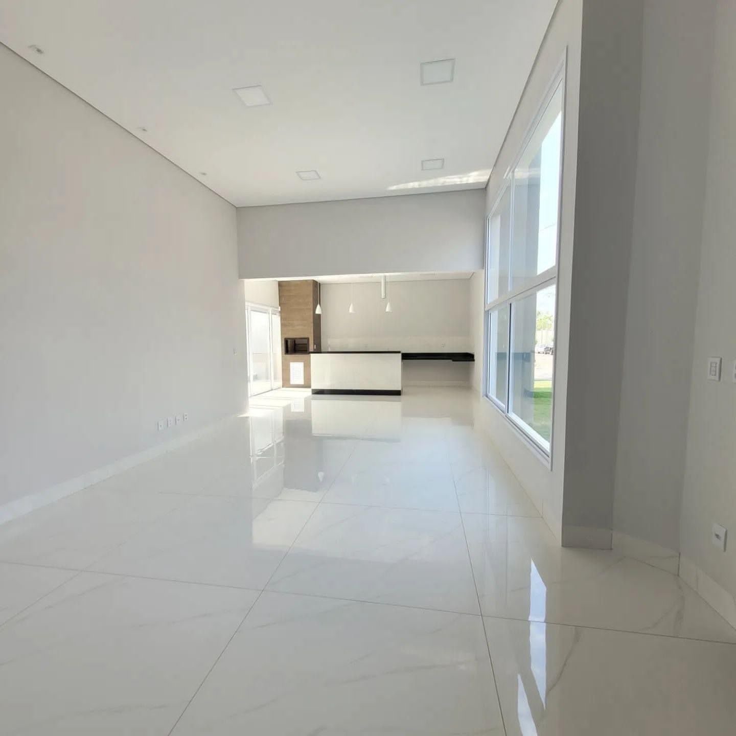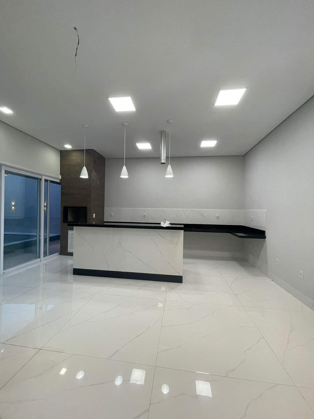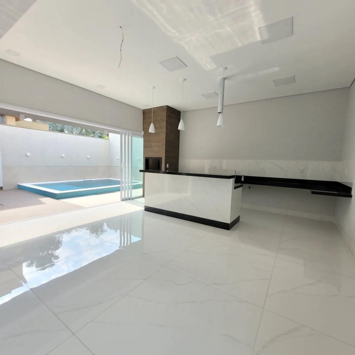 Espaço gourmet integrado com ilha e churrasqueira. Água quente na cozinha.
