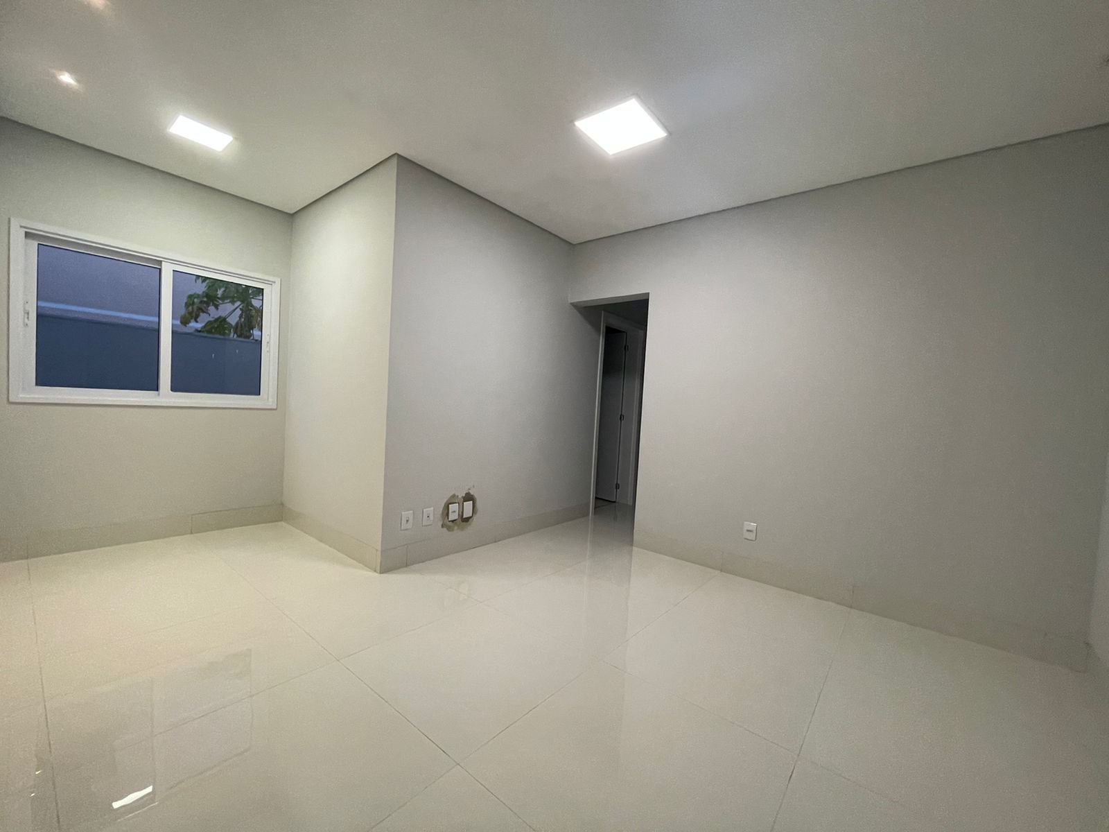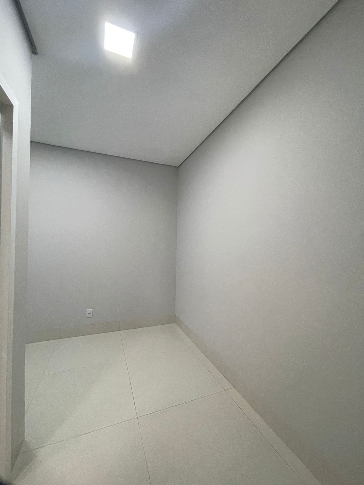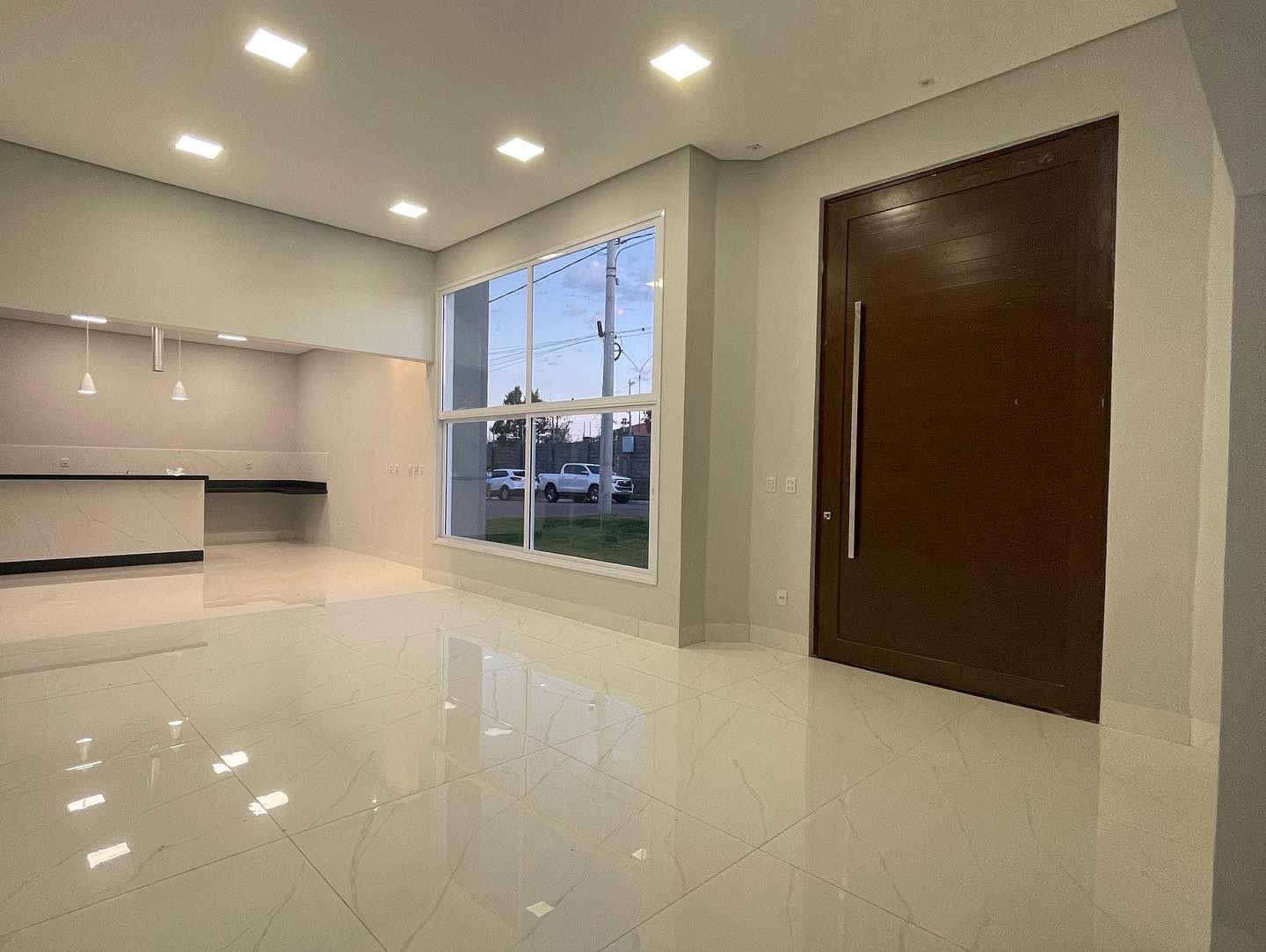 Sala pé direito alto com porta pivotante de 3,35 m.