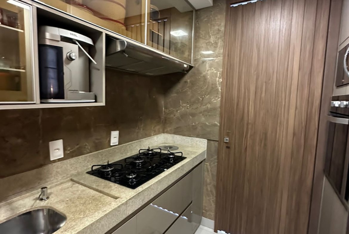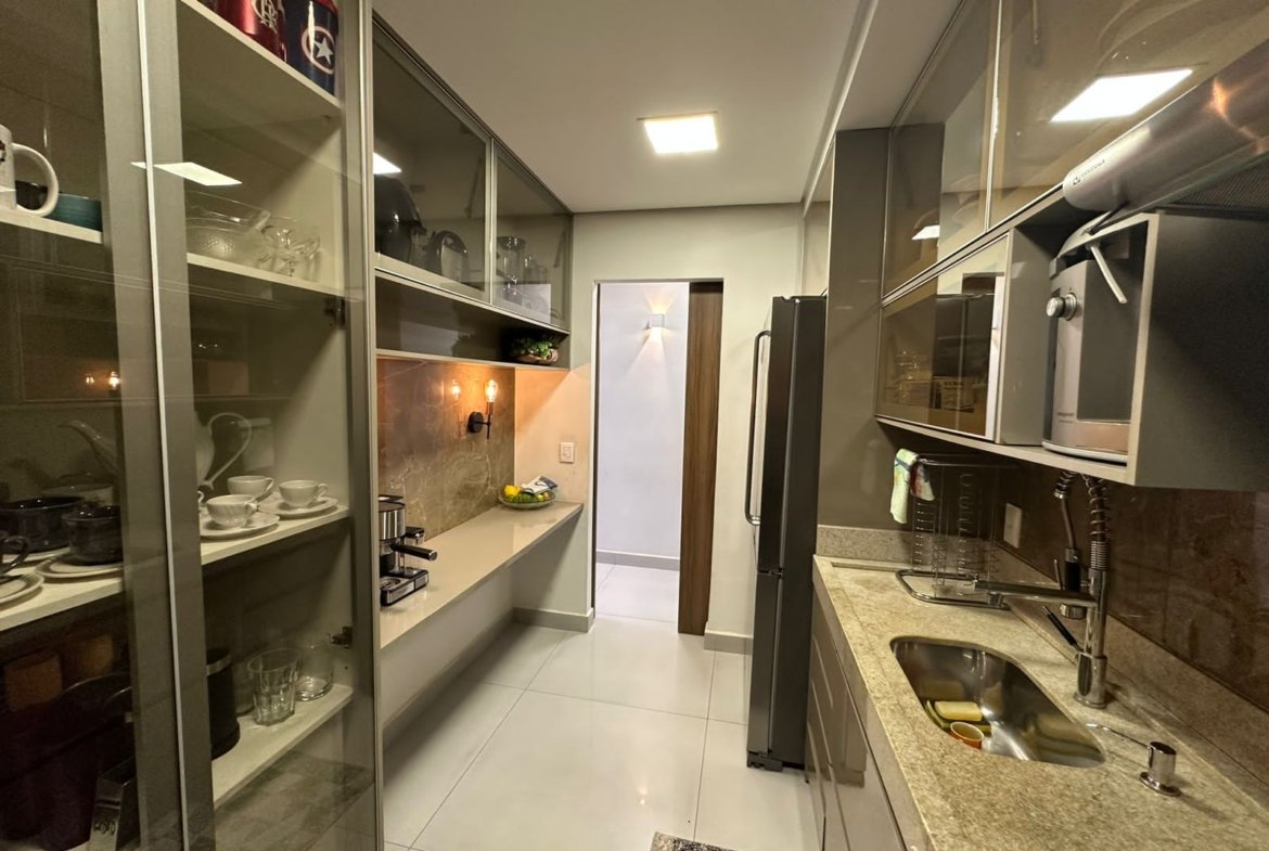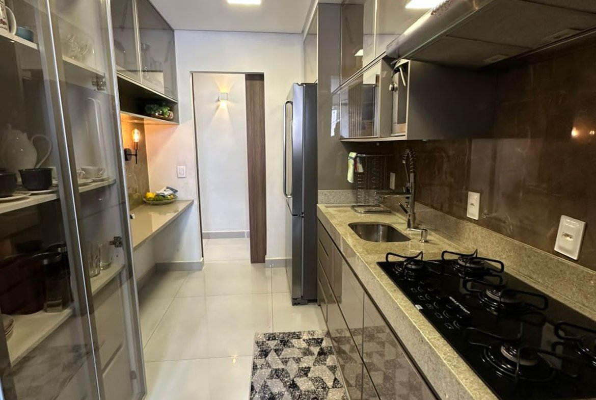 – Cozinha com planejados e cooktop, depurador e forno embutidos.
