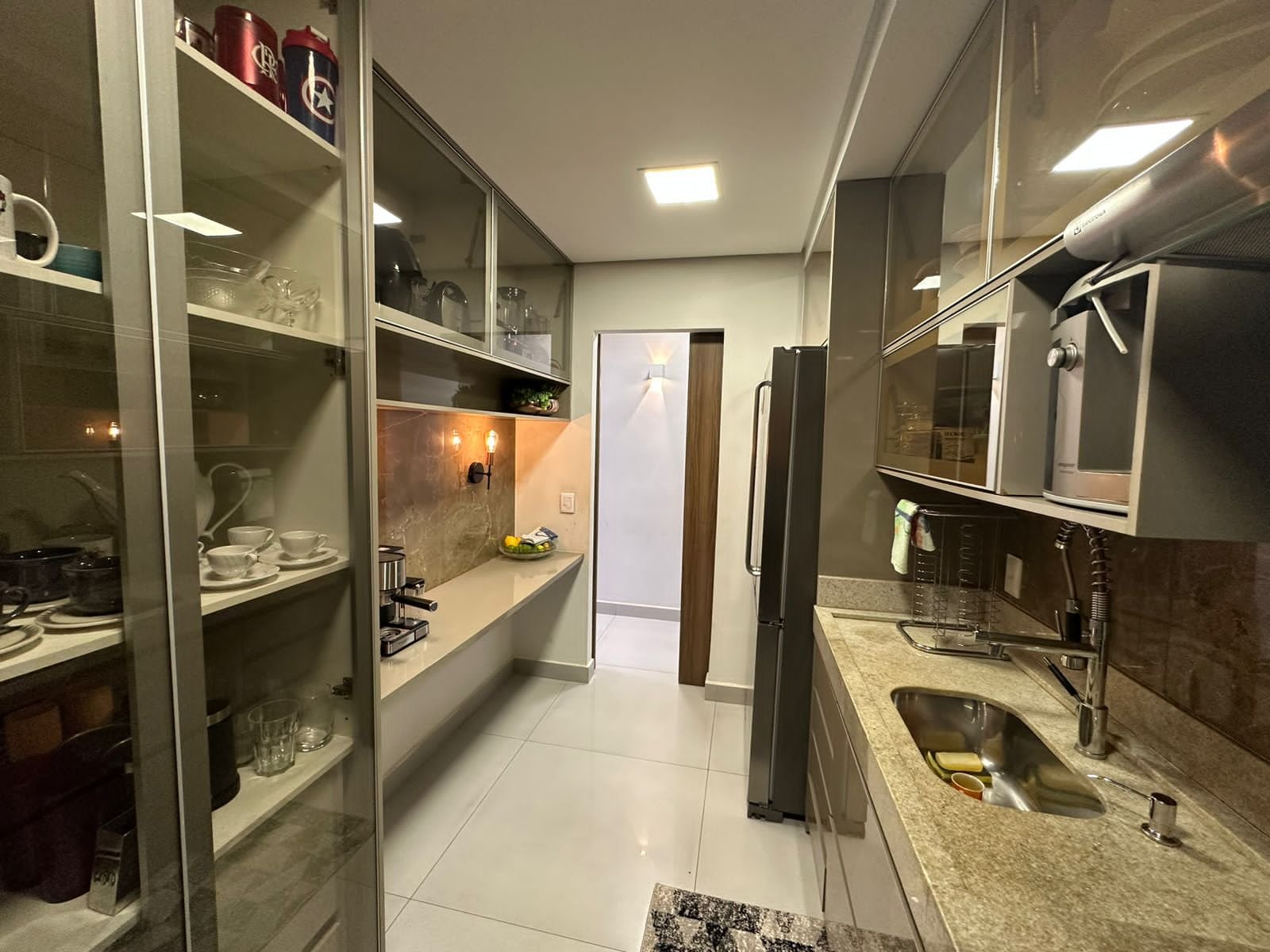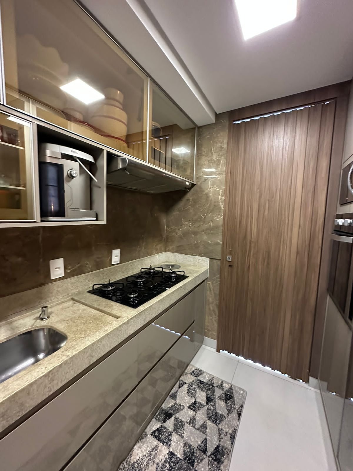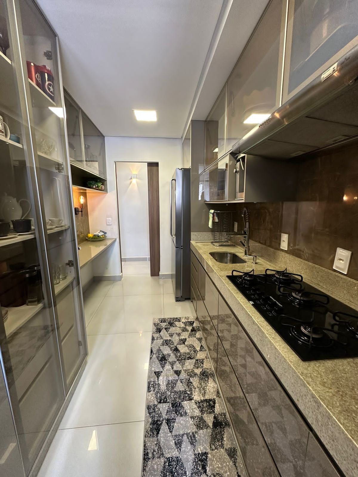 – Cozinha com planejados e cooktop, depurador e forno embutidos.