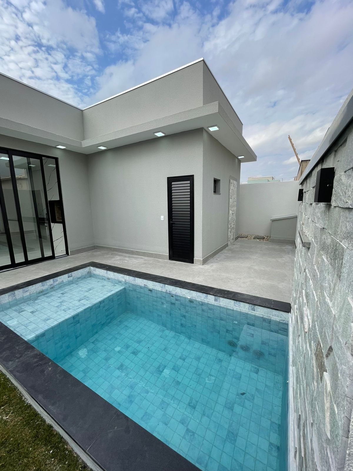 – Piscina com cascata, led e hidromassagem